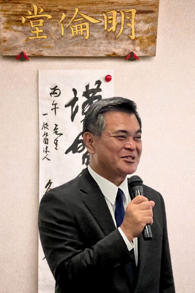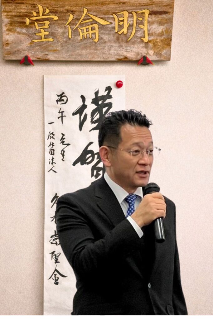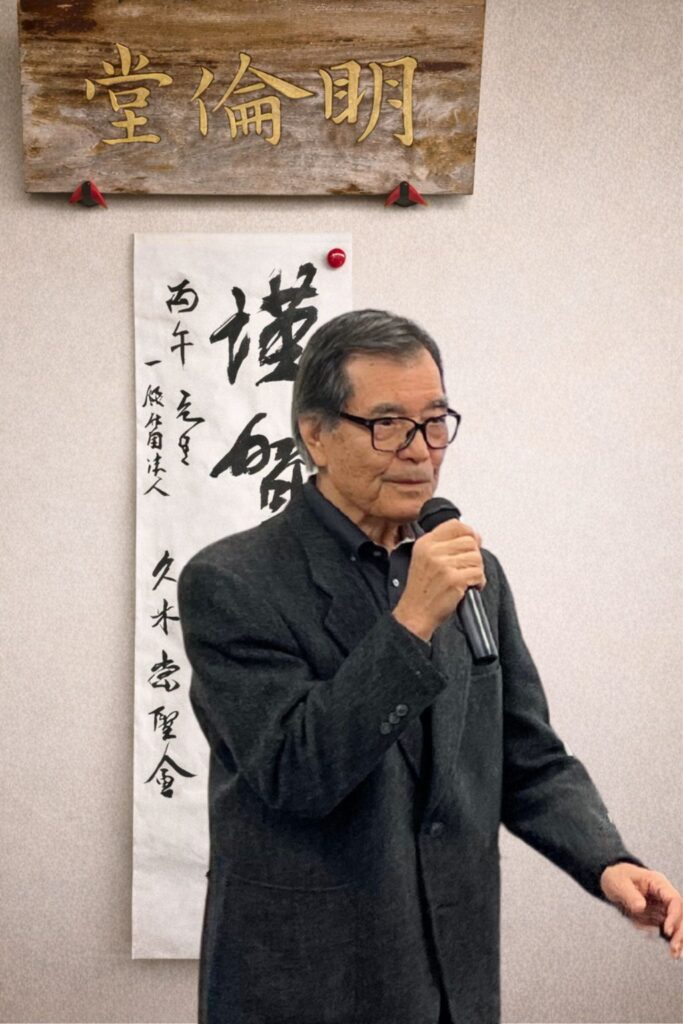 続いて、琉球大学名誉教授 上里賢一様よりご挨拶をいただきました。久米村の歴史に触れながら、その精神と文化をいかに次代へ継承していくかについて示唆に富むお話を賜り、参加者一同、改めて久米の歩みに思いを深めました。