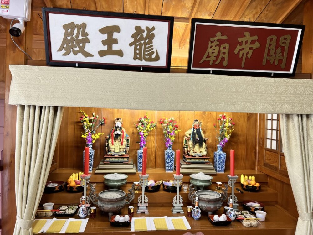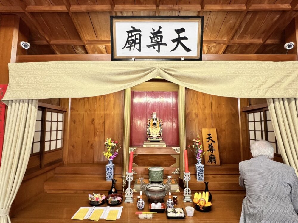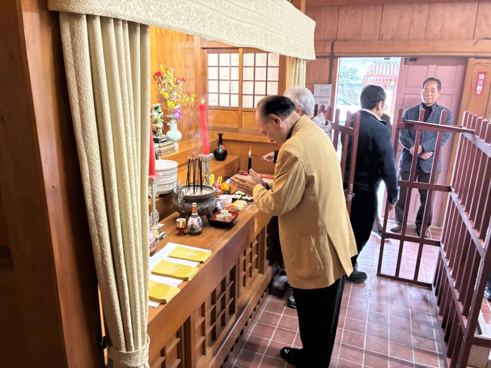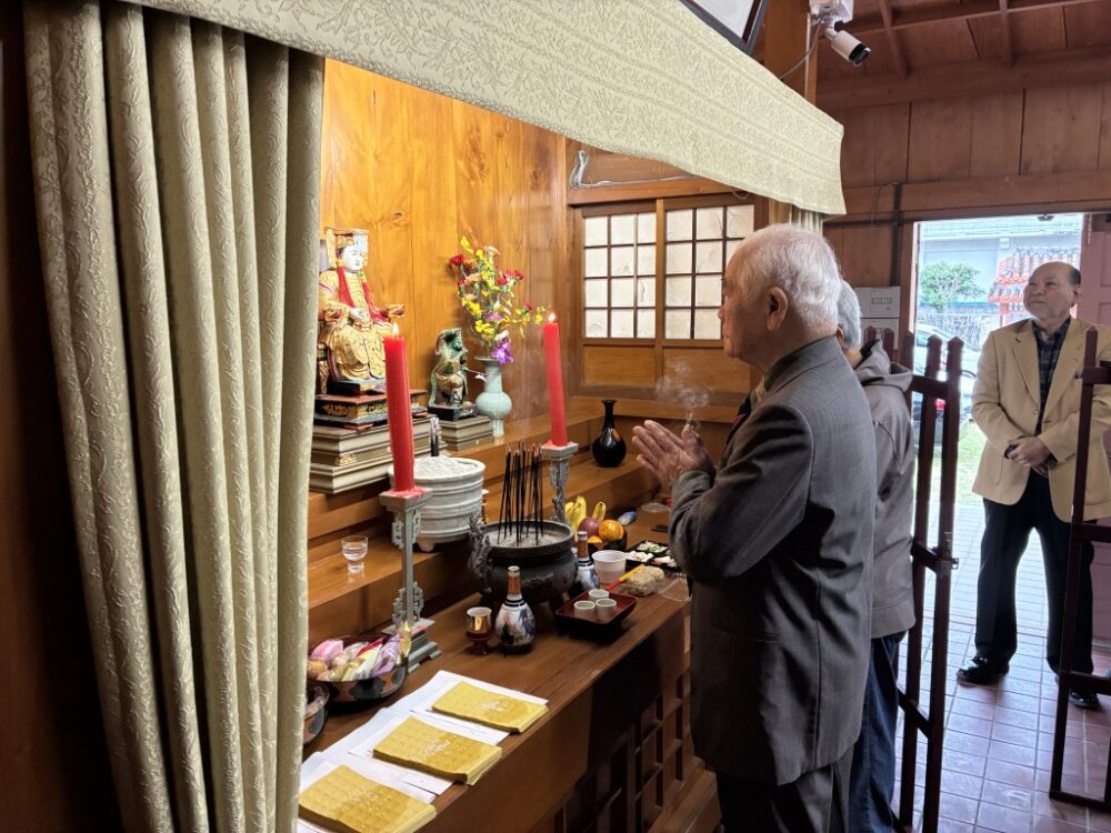久米崇聖会の役員・会員が参集し、天尊廟・天妃宮・関帝廟・龍王殿それぞれに線香を手向け、祈りを捧げました。