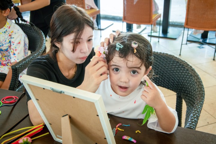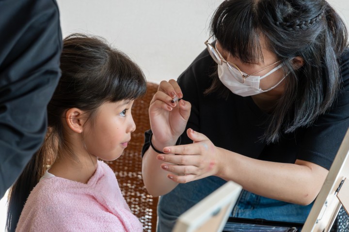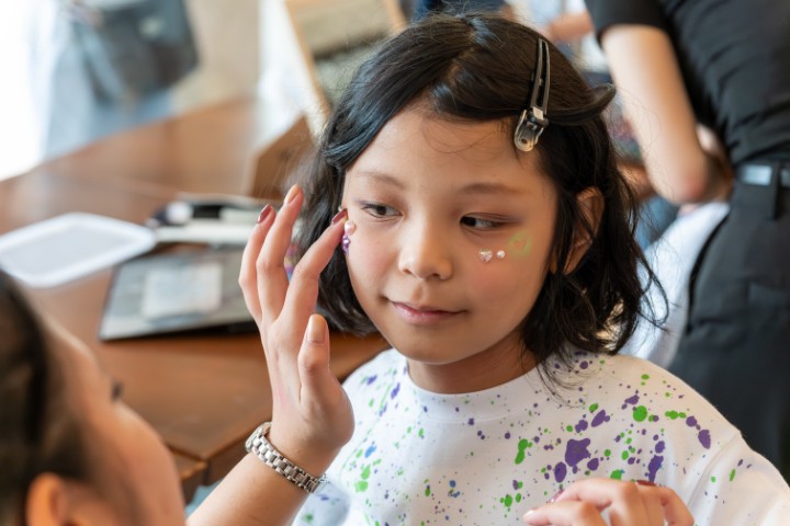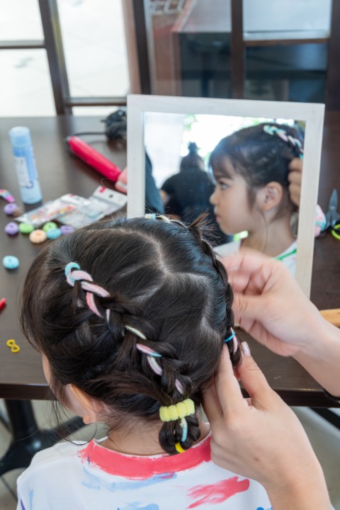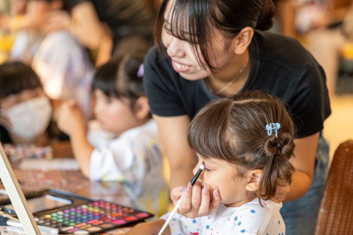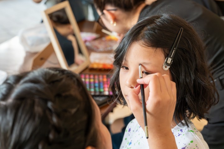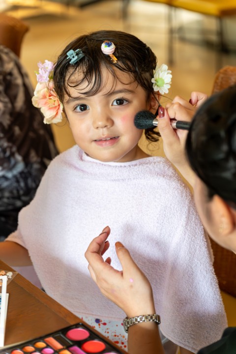 最初は緊張で声も小さかった子どもたちですが、ヘアメイクとメイクアップを終えるころには笑顔が広がり、テンションもぐんとアップしているようでした。