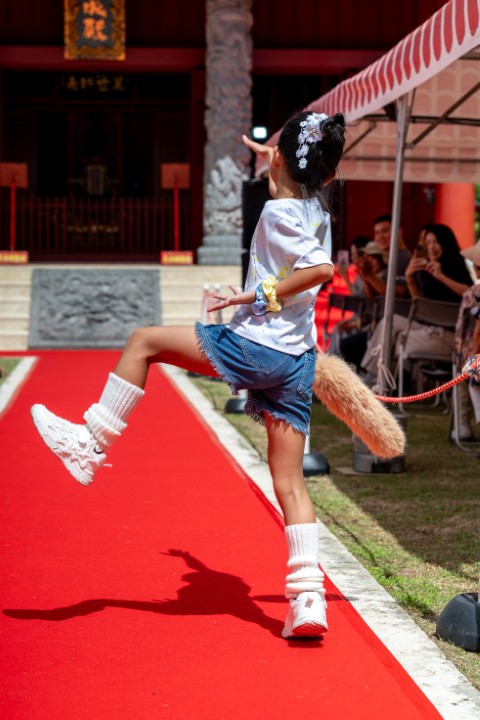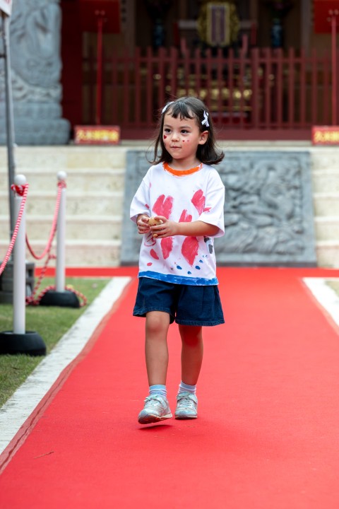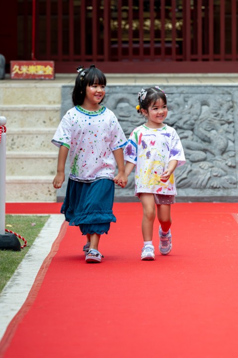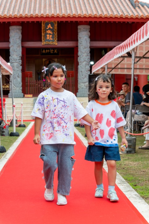 本イベントは、久米崇聖会が主催する「釋奠祭禮(せきてんさいれい)」のプレイベントとして行われ、子どもたちが自分でデザインした衣装を身にまとい、赤いカーペットの上を歩くファッションショーです。
