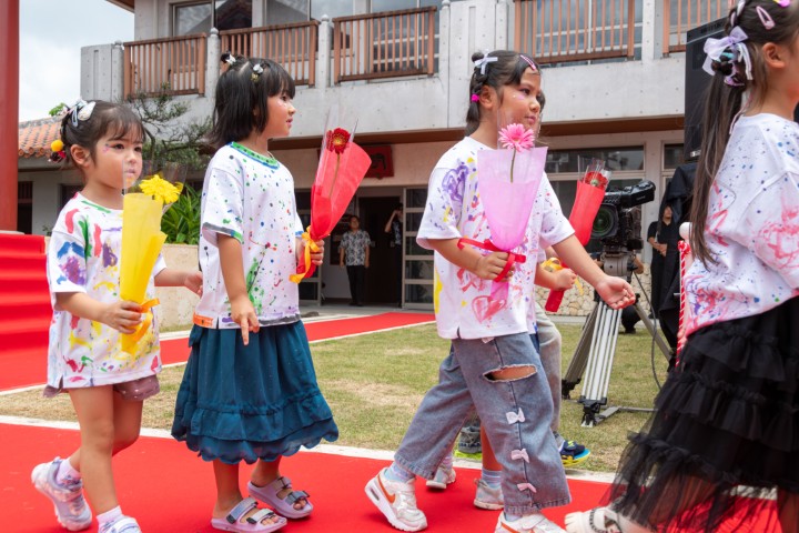 本番では目を輝かせながら音楽に合わせて元気いっぱいにランウェイを歩く姿を見せてくれました。観客席からは大きな拍手と歓声が送られ、子どもたちの堂々とした姿に感動の声があがりました。